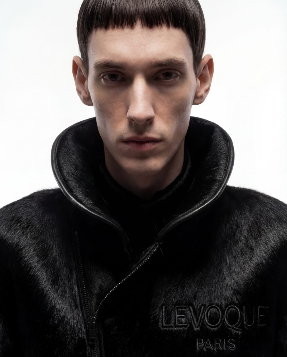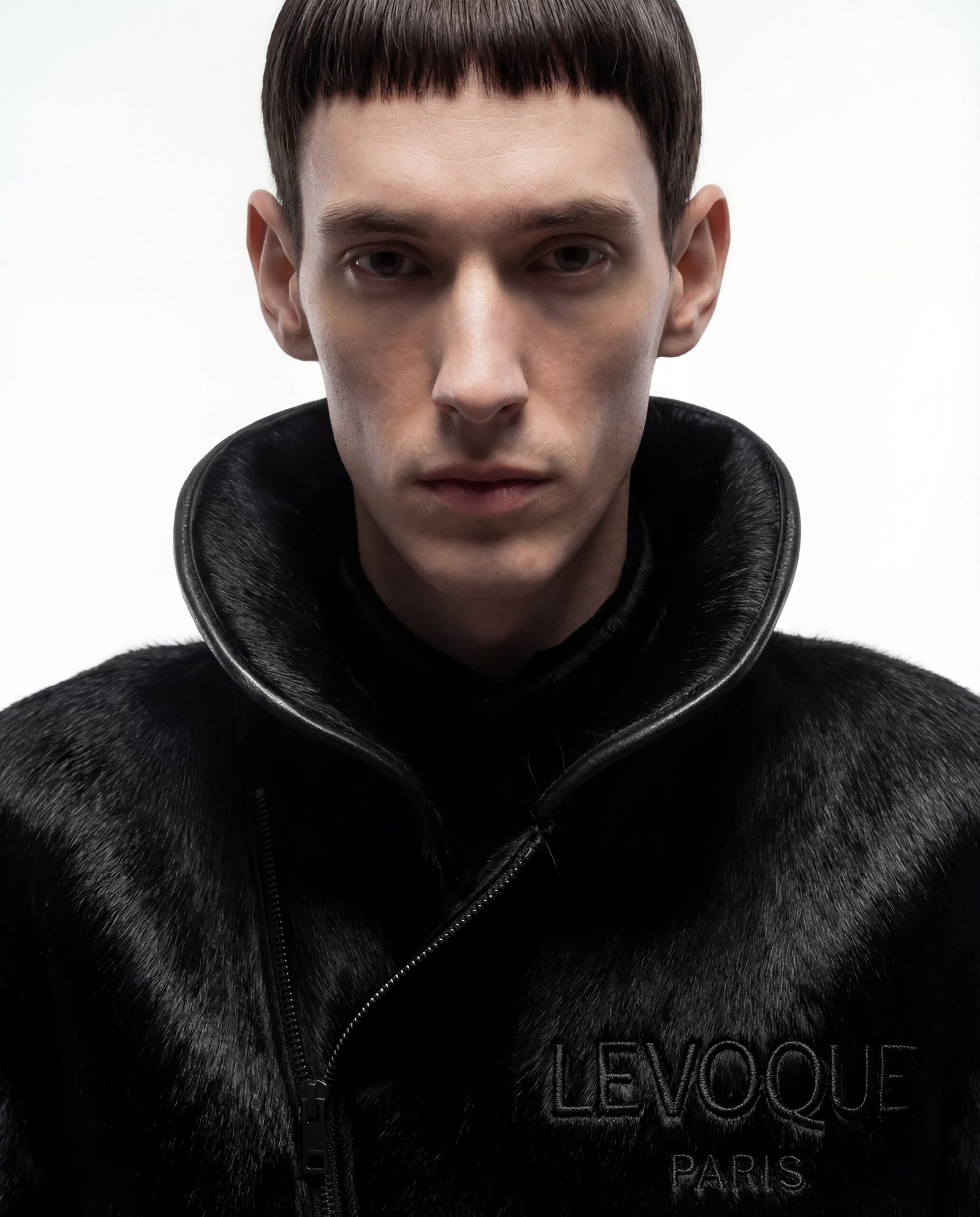 The front is closed with a concealed, high-grade black zipper, while the LEVOQUE PARIS logo is embossed directly onto the leather in a subtle tone-on-tone finish visible only as the light moves across the surface.