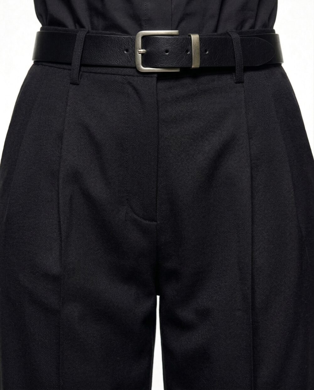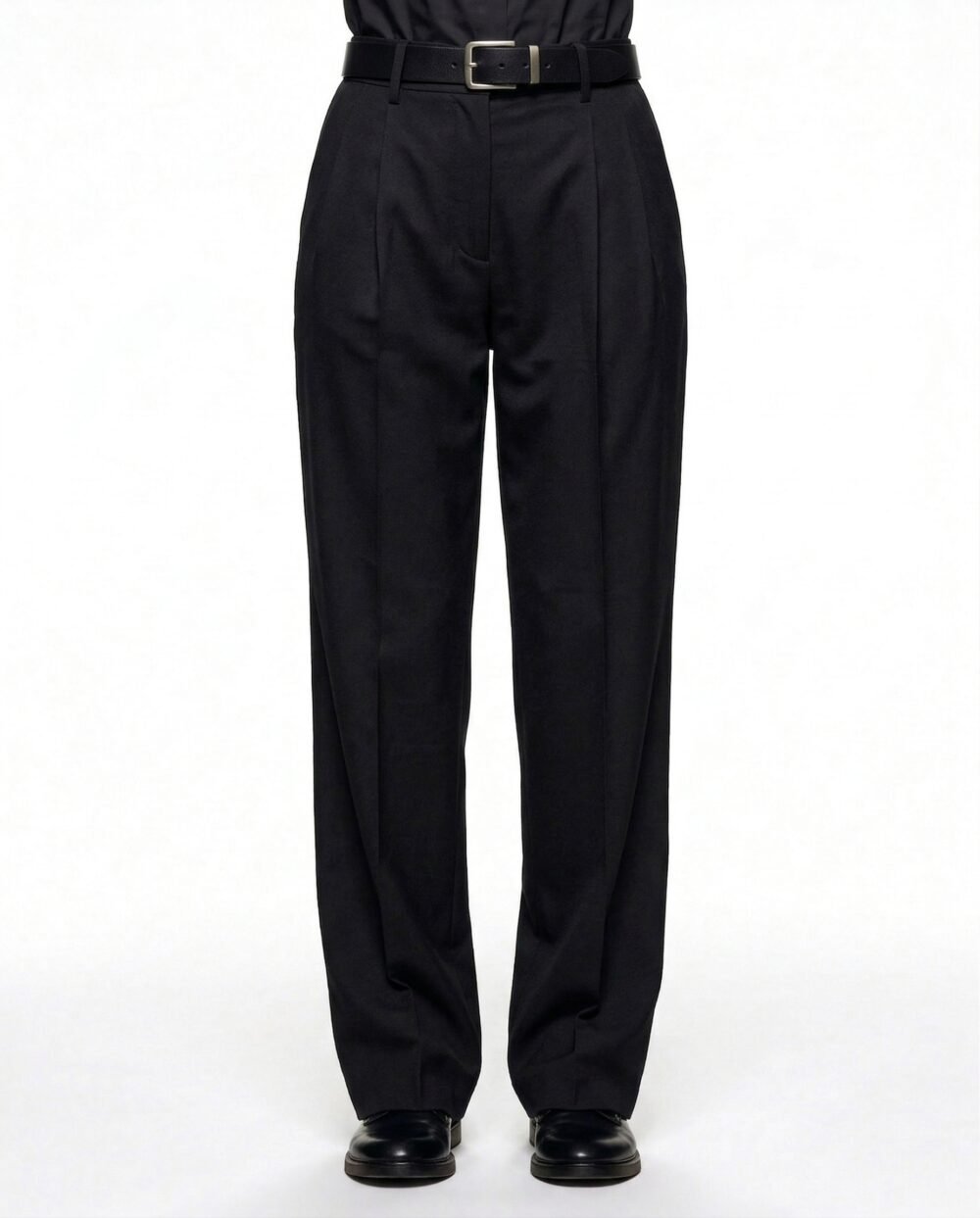 A subtle matte finish, deep black hue, and minimal detailing ensure these trousers transcend seasons and trends, anchoring any wardrobe in timeless sophistication.