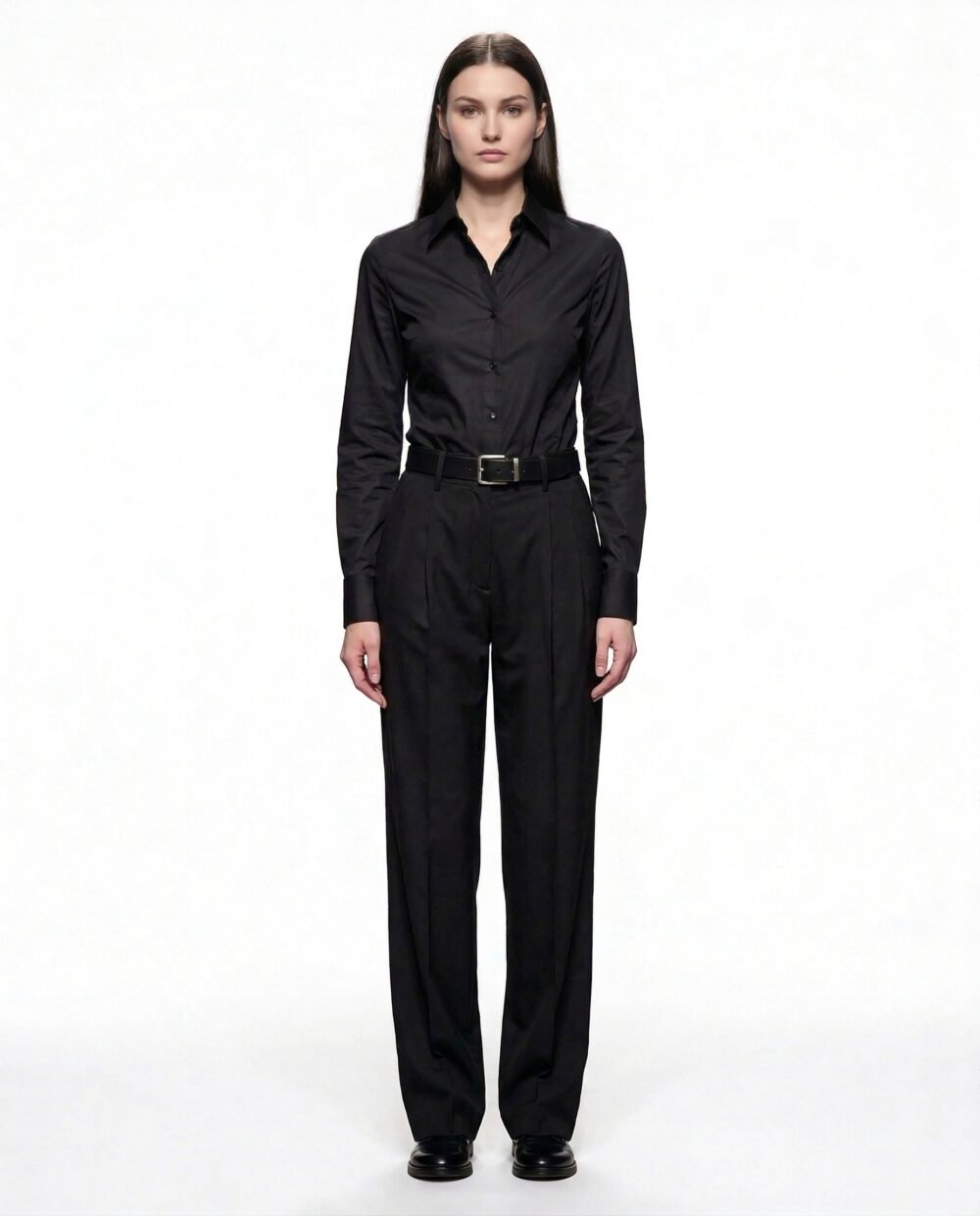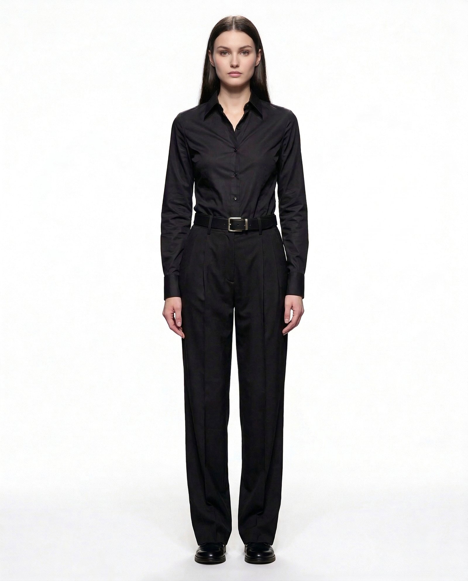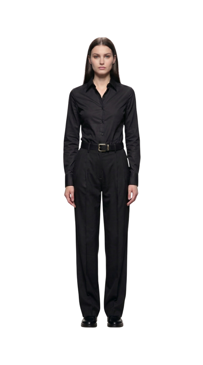 Cut with a high waist and elongating pleats, the design balances structure and ease. The sharp crease and slightly relaxed leg create a modern, genderless proportion refined yet effortless.